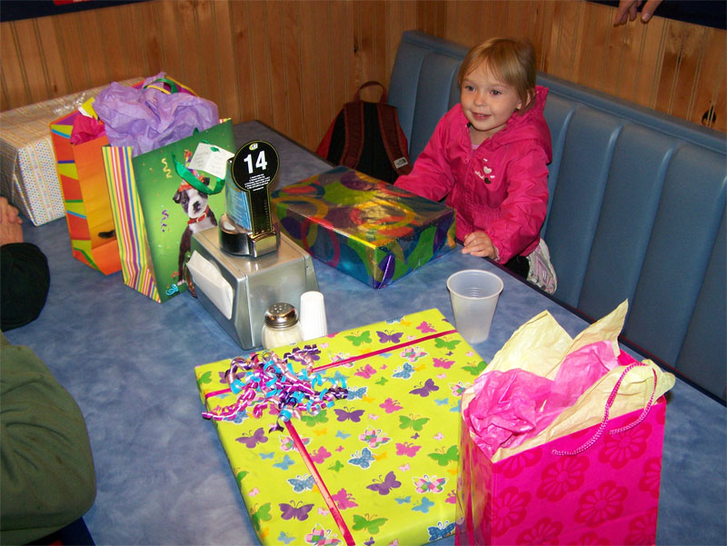 Overall, it was really fun birthday for our now four-year-old girl! It was so cute--just after she woke up the morning of her birthday, I told her happy birthday and that she was no longer three, she was now four. She was all excited, then put her hand to her heart and said, "I can feel my birthday in my heart, Mommy." I can't believe how she's grown up! But just as cute as ever!